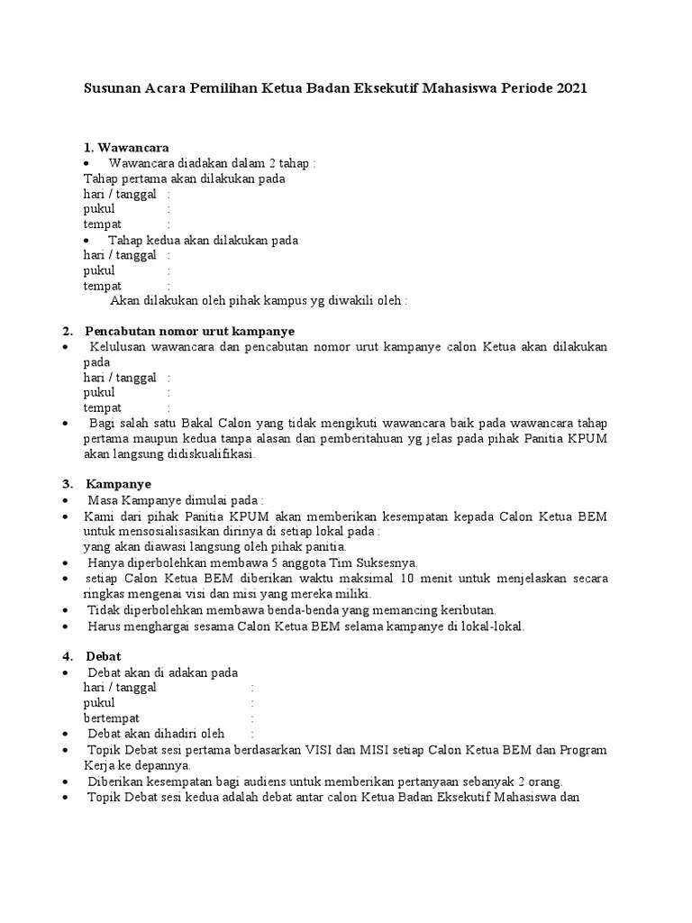 Pertanyaan Wawancara Calon Ketua Bem / Hasil Verifikasi Berkas Resmi Diumumkan Bakal Paslon Siap Ikuti Seleksi Tahap Selanjutnya Peristiwa Online : Sesi kedua pertanyaan dari panelis, sesi ketiga debat antar calon, .. Para bakal calon itu wajib mengikuti tes tertulis dan wawancara langsung. Debat calon ketua bem kali ini dibagi dalam 5 sesi. Mendatangi sebuah wawancara terasa seperti kamu sedang ikut tes dengan tanpa jawaban yang pasti tentang benar dan salah. Sesi pertama berupa pembacaan visi misi, sesi kedua adalah sesi pertanyaan oleh . 42k views 1 year ago .